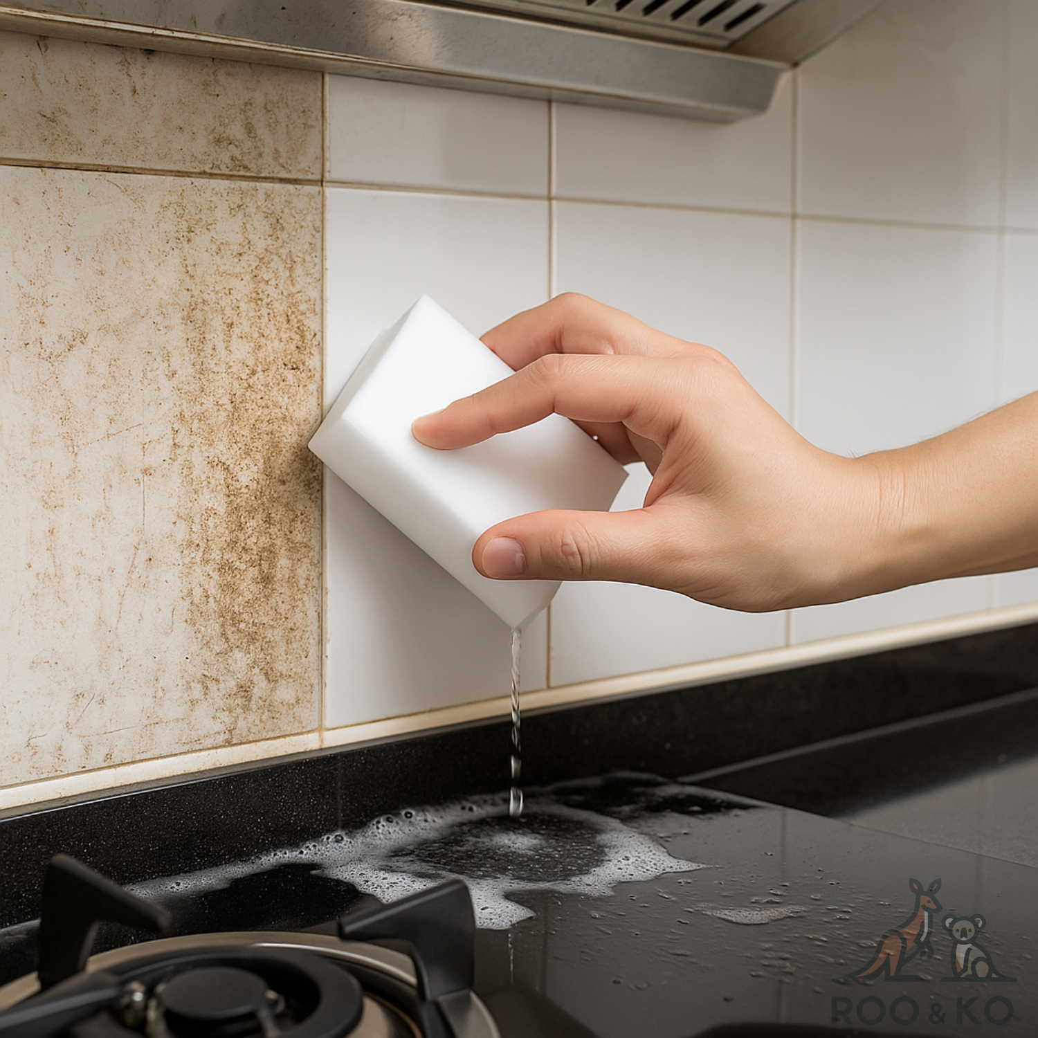 Just add water: lifts marks from walls, switches, tiles and more—no harsh chemicals.